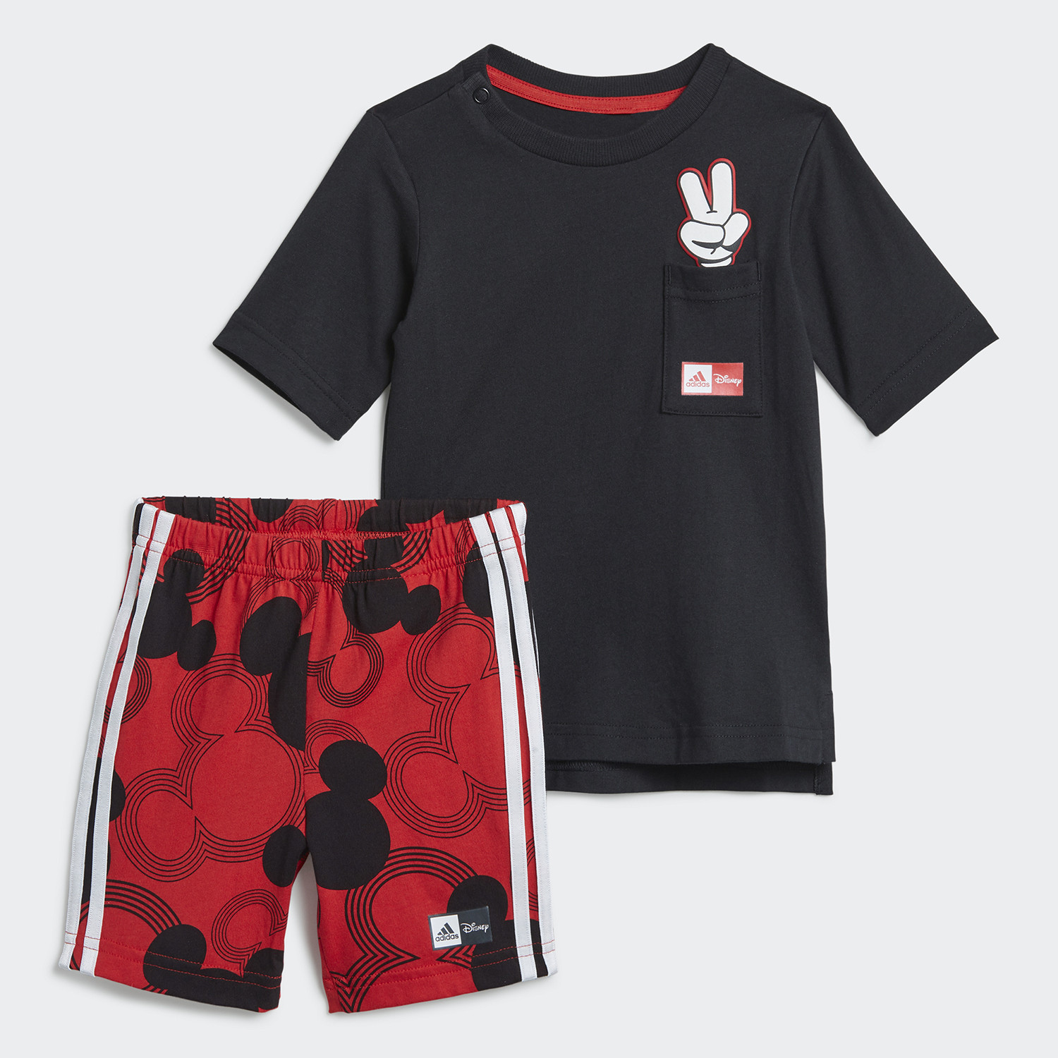 Ένα Καλοκαιρινό Σετ Για Τους Φίλους Του Mickey Mouse. Εξασφάλισε δροσερή αίσθηση στο μωράκι σου με τη βοήθεια του Mickey Mouse της Disney. Αυτό το βρεφικό καλοκαιρινό σετ adidas αποτελείται από μακρυμάνικη μπλούζα και σορτσάκι. Το μαλακό βαμβάκι εξασφαλίζει άνεση. Το κορδόνι στην ελαστική μέση κρατά τα πάντα στη θέση τους. Τα Χαρακτηριστικά του • Σύνθεση: 100% βαμβάκι • Μπλούζα με κανονική εφαρμογή, σορτς με στενή γραμμή • Rib στρογγυλή λαιμόκοψη (πρεσσαριστά κουμπιά στον λαιμό, μεγέθη 62-86) • Ραμμένη τσέπη στην μπλούζα • Μακριά μπλούζα με πλαϊνά ανοίγματα στο τελείωμα • Ελαστική μέση με κορδόνι • Σορτς με μακριά γραμμή Extra Πληροφορίες • Disney σχέδια • Κατασκευασμένο από ανακυκλωμένα υλικά • Χρώμα: Μαύρο / Κόκκινο Φροντίδα • Κρύο πλύσιμο στο πλυντήριο • Πλύντε και στεγνώστε από την ανάποδη • Μην σιδερώνετε το σχέδιο • Όχι στεγνό καθάρισμα
