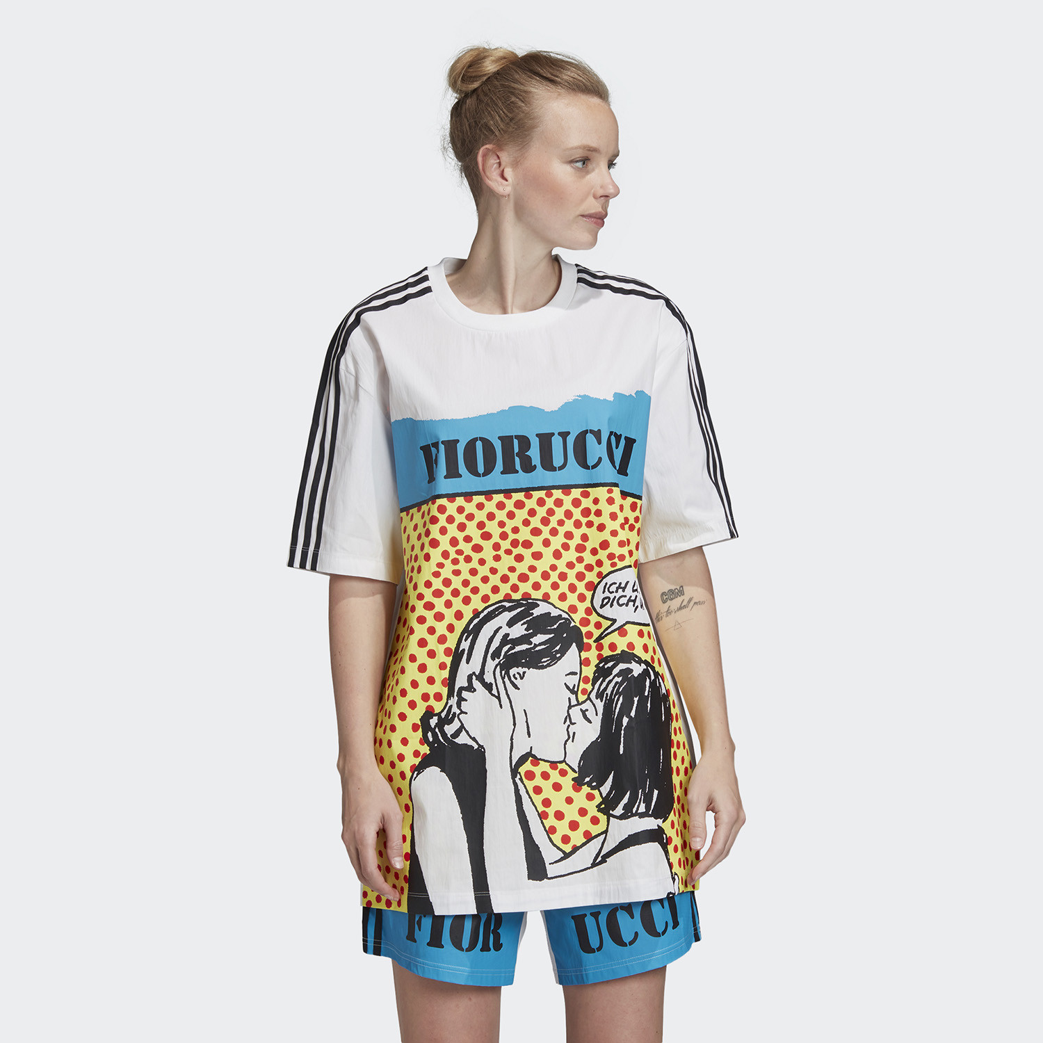 adidas Μπλούζα Με Σχέδια Fiorucci Η αυτοεκτίμηση είναι το παν! Δείξε σε όλους την ρομαντική σου πλευρά με αυτή την μπλούζα από adidas που αποτελεί κομμάτι της συνεργασίας με τον Fiorucci, τον αστείρευτα δημιουργικό οίκο μόδας. Εμπνευσμένη από την ημέρα του Αγίου Βαλεντίνου και την αγάπη, το χαριτωμένο σχέδιο στην μπροστινή πλευρά συνδυάζεται με τις τρεις χαρακτηριστικές ρίγες της adidas και σε κάνει να κλέψεις εντυπώσεις. Τα Χαρακτηριστικά της • Σύνθεση: 73% βαμβάκι / 27% νάιλον • Φαρδιά εφαρμογή • Στρογγυλή λαιμόκοψη • Σχέδιο Fiorucci Extra Πληροφορίες • Λογότυπο adidas • Κρύο πλύσιμο στο πλυντήριο • Το μοντέλο είναι 175cm και φοράει μέγεθος 36 (S) Η adidas συνεργάζεται με την Better Cotton Initiative για να βελτιώσει τη βαμβακοκαλλιέργεια παγκοσμίως