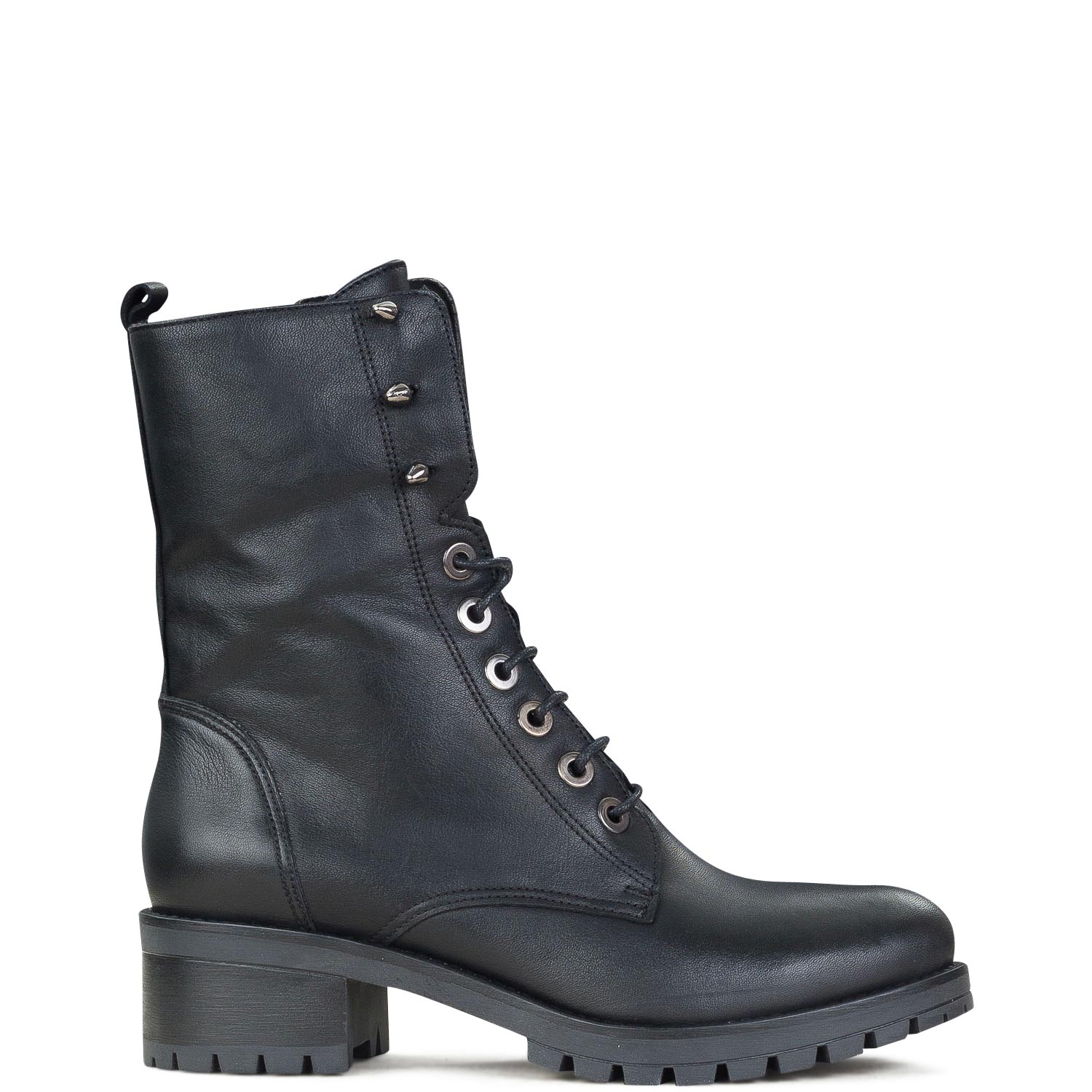 Μποτάκια Bike της εταιρίας Anna Bonilla για τη γυναίκα. Είναι φτιαγμένα από δέρμα νάπα εξωτερικά, ύφασμα εσωτερικά και έχουν λάστιχο στη σόλα τους. Έχουν τακούνι 5cm και φιάπα 2 cm. Η γραμμή τους είναι κανονική.