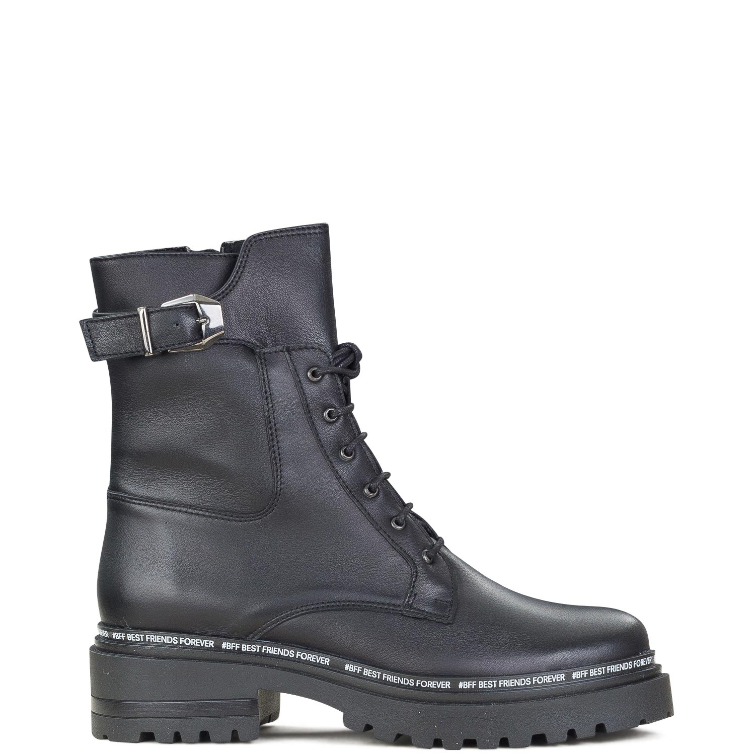 Μποτάκια Bike της εταιρίας Anna Bonilla για την γυναίκα. Είναι φτιαγμένα από δέρμα εξωτερικά, ύφασμα εσωτερικά και έχουν λάστιχο στη σόλα τους. Έχουν τακούνι 4cm και φιάπα 2 cm. Η γραμμή τους είναι κανονική.
