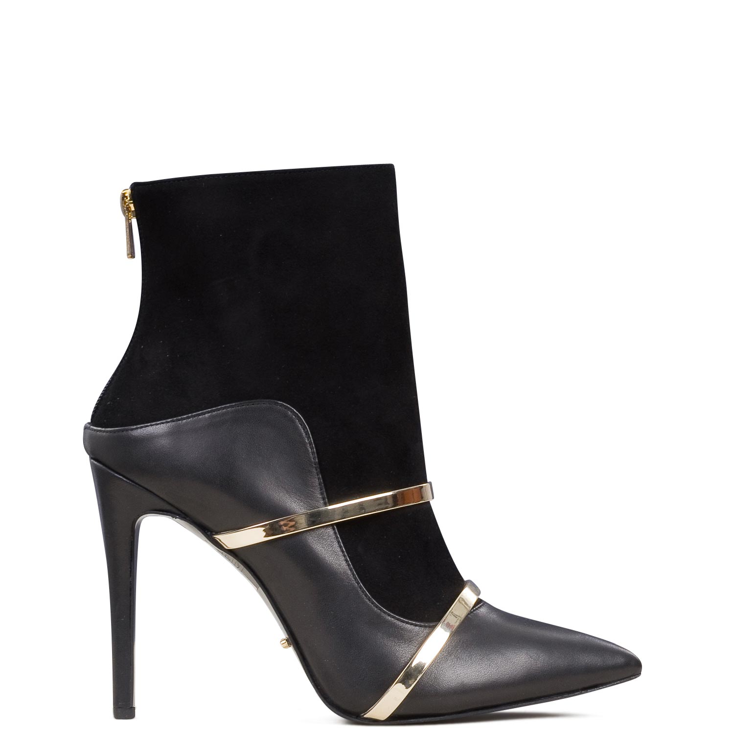 Μποτάκια High Heels της εταιρίας Classico Donna για την γυναίκα.Είναι Φτιαγμένα απο δέρμα καστόρινο/νάπα εξωτερικά, δέρμα νάπα εσωτερικά και vulcanized rubber στην σόλα τους.Έχουν ύψος μπότας 12cm,περιφέρεια 25cm και ύψος τακούνι 11cm.