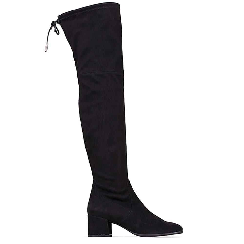 Γυναικεία μπότα, που φτάνει πάνω από το γόνατο, της εταιρείας evaluna,σχέδιο 4688.Είναι κατασκευασμένη στην Ιταλία από ύφασμα σουέντ με τακούνι ύψους 6 cm. Σουρώνει στο πάνω μέρος.