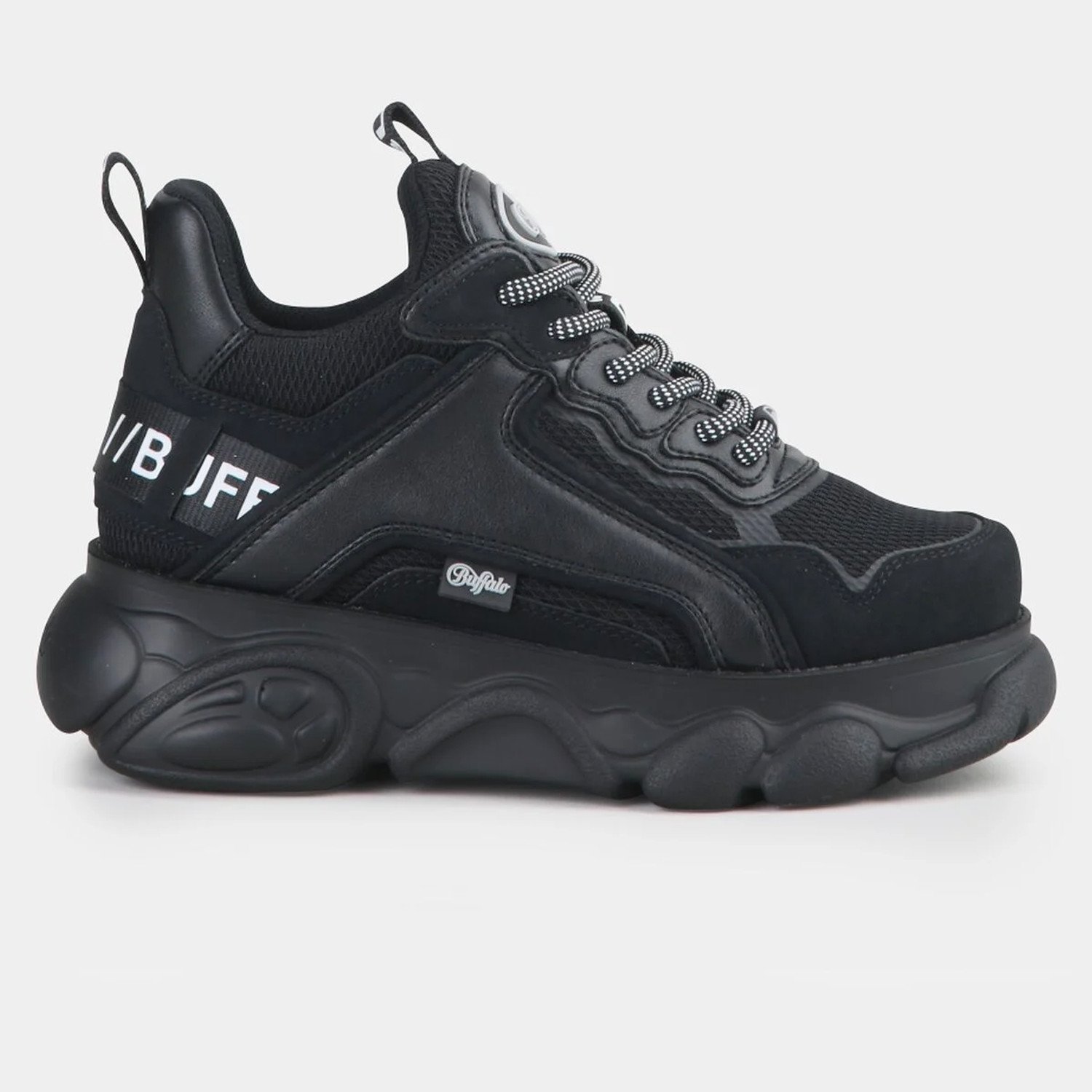 Ένα Ξεχωριστό Παπούτσι Για Σένα Σου αρέσει να συνδυάζεις το casual look με το αθλητικό; Τα Buffalo είναι εδώ για ακριβώς αυτόν τον σκοπό! Η φανταστική εφαρμογή του αναδεικνύει τη σπορ εμφάνιση. Η σόλα του είναι σε σχήμα πλατφόρμας και έχει ρετρό χαρακτήρα. Τα Χαρακτηριστικά του • Βάρος: 420 g (το νούμερο 36) • Πάχος σόλας: 4 cm • Συνολικό ύψος παπουτσιού: 15,5 cm Extra Πληροφορίες • Ελαφρώς στενή εφαρμογή • Οικολογικό δέρμα στο πάνω μέρος • Buffalo λογότυπο • Χρώμα: Μαύρο