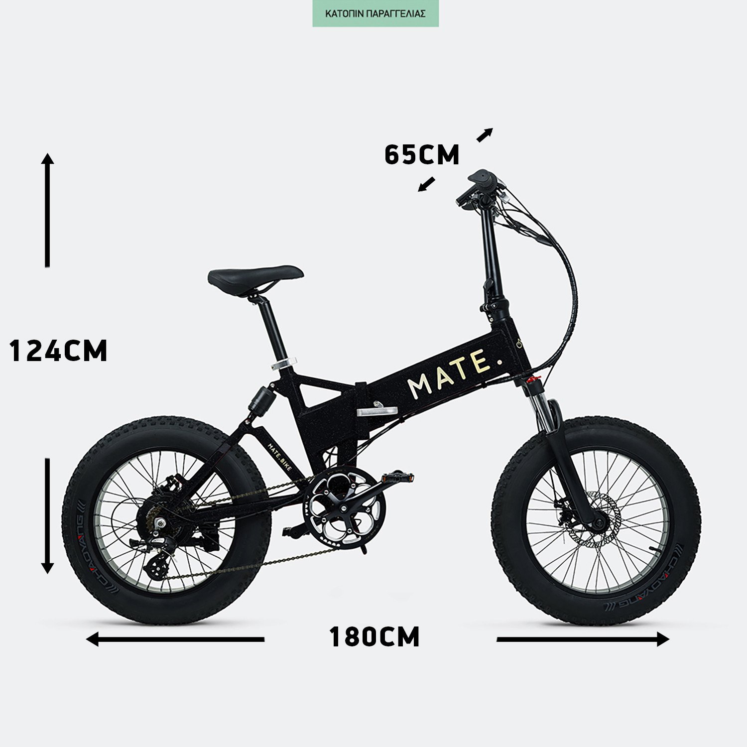 Η MATE.bike προέρχεται από την Κοπενχάγη, μια startup με έτος ίδρυσης το 2016. Από τότε προτεραιότητά τους είναι να δημιουργήσουν τα πιο cool και λειτουργικά ηλεκτρικά ποδήλατα ώστε να μετατρέψουν την ποδηλασία ως τον προτιμότερο τρόπο μεταφοράς παντού! Το MATE.bike X διαθέτει ένα εμβληματικό ματ φινίρισμα με εξαιρετικά μοντέρνα χαρακτηριστικά. Ο ισχυρός κινητήρας και η μπαταρία υποστηρίζονται από δισκόφρενα υψηλής απόδοσης, ενώ τα ελαστικά του είναι κατάλληλα για κάθε έδαφος, για απόλυτη ευελιξία. Βασίσου στον ισχυρό του κινητήρα και στην και στην μπαταρία υψηλής ροπής και εκτεταμένης εμβέλειας για να σε οδηγήσει πίσω στο σπίτι μετά από μια ημέρα γεμάτη περιπέτεια. Το ηλεκτρικό ποδήλατο MATE X της MATE.bike αποτελείται από υδραυλικά δισκόφρενα με ακριβή διαμόρφωση και αυτορυθμιζόμενα φρένα, ενεργή πλήρη ανάρτηση και ελαστικά ιδανικά για κάθε τύπο εδάφους που ολοκληρώνουν αυτό το ευέλικτο design σχεδιασμένο για απόλυτη ελευθερία. Περιλαμβάνονται προορατικά ανθεκτικά φτερά αλουμινίου πλήρους προστασίας από βροχή & λάσπη και πίσω σχάρα η οποία είναι ιδανική για μετακινήσεις και αγορές. Μπορεί να αντέξει έως 25 κιλά. Τεχνικά Χαρακτηριστικά Μοτέρ: 250W, 48V πίσω πλήμνης χωρίς ψήκτρες με ελεύθερο τροχό Controller: 250W, 48V, 18A Μπαταρία: Samsung/LG/Panasonic 48V, 11 Ah (528 Wh) 250W. Έως 40 km (24 mi) Samsung/LG/Panasonic 48V, 11 Ah (528 Wh) 250W. Έως 40 km (24 mi)Samsung/LG/Panasonic 48V, 11 Ah (528 Wh) 250W. Έως 40 km (24 mi) Samsung/LG/Panasonic 48V, 11 Ah (528 Wh) 250W. Έως 40 km (24 mi) range Βοήθημα Πεταλιού: Υποβοήθηση ισχύος 9 επιπέδων με αισθητήρα ρυθμού, υποστήριξη έως και 25 km / h (15,5 mph). Υποβοήθηση πεζοπορίας 6 km / h (3,7 mph) Φόρτιση: 48V 2A, με θύρα σύνδεσης ασφαλείας 3-pin, λειτουργεί και στις πρίζες 110V και 230V AC Contoller: 250W, 48V, 18Α Μοτέρ: Κινητήρας πίσω πλήμνης 250W χωρίς ψήκτρες, 48V Οθόνη W / θύρα USB: Έξυπνη οθόνη LCD που δείχνει όλα τα απαραίτητα δεδομένα, συμπεριλαμβανομένης της στάθμης υποβοήθησης μπαταρίας και πεντάλ. Ενσωματωμένη θύρα φόρτισης 5V Σύνδεση καλωδίου: Σύστημα Plug & Play για εύκολη εξυπηρέτηση παγκοσμίως Shifter: 8-Speed Revoshift twist shifter 13-32T για ομαλή, εναλλαγή μεταξύ γραναζιών Αλυσίδα: KMC 8-ταχυτήτων, 116 σύνδεσμοι, ανθεκτική στην σκουριά Στρόφαλος: Κράμα 170 mm, δακτύλιο αλυσίδας 53-δοντιών, 5-μπουλονιών Πλαίσιο: 6061 Κράμα αλουμινίου με αναδιπλούμενο μοχλό, 2,7 kg (6 lbs) Μπροστινή Ανάρτηση: 20 “πιρούνι ελατηρίου κράματος αλουμινίου με κλείδωμα και ρύθμιση προφόρτισης 28,6 x 25,4 x 185 mm Πίσω Ανάρτηση: Προκαθορισμένη ανάρτηση 150L x 650B 24 x 33 Σύστημα Φρένων: Μηχανικοί μοχλοί δίσκων Tektro, εργονομική λαβή, με διακόπτη διακοπής κινητήρα. Η Tektro μηχανική παρέχει ισχυρή δύναμη πέδησης με ειδική διαμόρφωση. Δισκόφρενα 160 mm από αλουμίνιο εμπρός & πίσω, με αξιόπιστη επιφάνεια πέδησης Ελαστικά: 20 “x 4.0″ Big Daddy All-Terrain, Schrader βαλβίδα Ζάντες: 20” 36 οπών, αλουμίνιο Προβολές: Μπροστά: 13G x 183/185 mm | Πίσω: 12G x 129/131 mm Γκάζι: Δεν διατίθεται Επιπλέον Χαρακτηριστικά • Μέγιστο Βάρος Χρήστη: 150 kg • Πραγματικό Βάρος Ποδηλάτου: 33 kg • Διαστάσεις (όχι διπλωμένο): 124 x 180 x 65 cm (ΥxΜxΠ) • Διαστάσεις (διπλωμένο): 78 x 103 x 59 cm (ΥxΜxΠ) • Αντιολισθητικές εργονομικές λαβές 90mm L / 130mm R • Ίσιο τιμόνι 62 cm πλάτος, 3.18 cm πρόσδεδη • Αντιολισθητικές λαβές • Σύστημα Τιμονιού: Αναδιπλούμενο σε δύο τμημάτων, ρυθμιζόμενο με αυτόματο κλείδωμα • Ρυθμιζόμενο ύψος σέλας / τιμονιού για οδηγούς με ύψος μεταξύ 1.5m έως 2.15 m. • Άνετη σέλα από ανθεκτικό συνθετικό δέρμα Το MATE.bike X 250 i είναι νόμιμο παγκοσμίως και στην ΕΕ. Σύμφωνα με την πιστοποίηση EN15194 δε χρειάζεται άδεια οδήγησης.