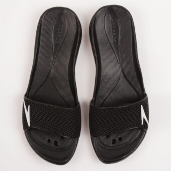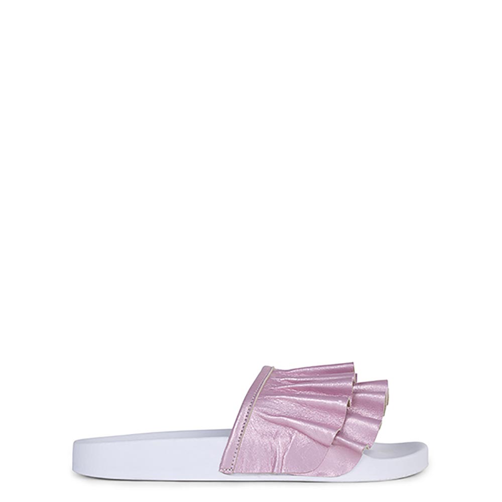 Γυναικεία πέδιλο, σε στυλ pool slider, από δέρμα,με ύφασμα εσωτερικά και σόλα από καουτσούκ.